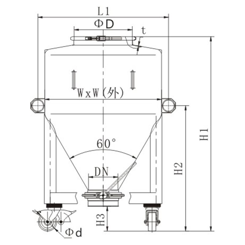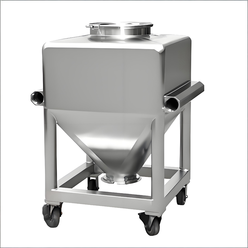 It is suitable for the transfer of materials in closed production processes in pharmaceutical enterprises, food enterprises, chemical enterprises, and other related industries. The top cover and valves of this equipment are all equipped with silicone sealing rings, ensuring that medicines are stored in a closed, safe, and moisture-proof manner. Materials can fulfill different purposes in the same container, eliminating frequent processes such as material transfer and refeeding, and effectively preventing cross-contamination from dust. It fully complies with the GMP requirements for pharmaceutical and food production.